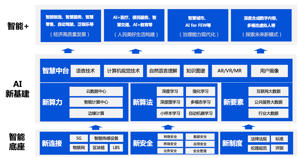 与此同时,需求侧正在与上述供给侧相融合。受长期的经济转型压力和近期抗疫恢复形成的双重牵引影响,人口红利转化为创新红利所引发的转型需求、超大规模且多样的应用需求以及疫情等黑天鹅催生的新兴需求,正在对人工智能技术和产业化落地提出了更多的要求,也为人工智能发展创造了更多“潜在刚需”的新场景,推动“智能+”不断深入。