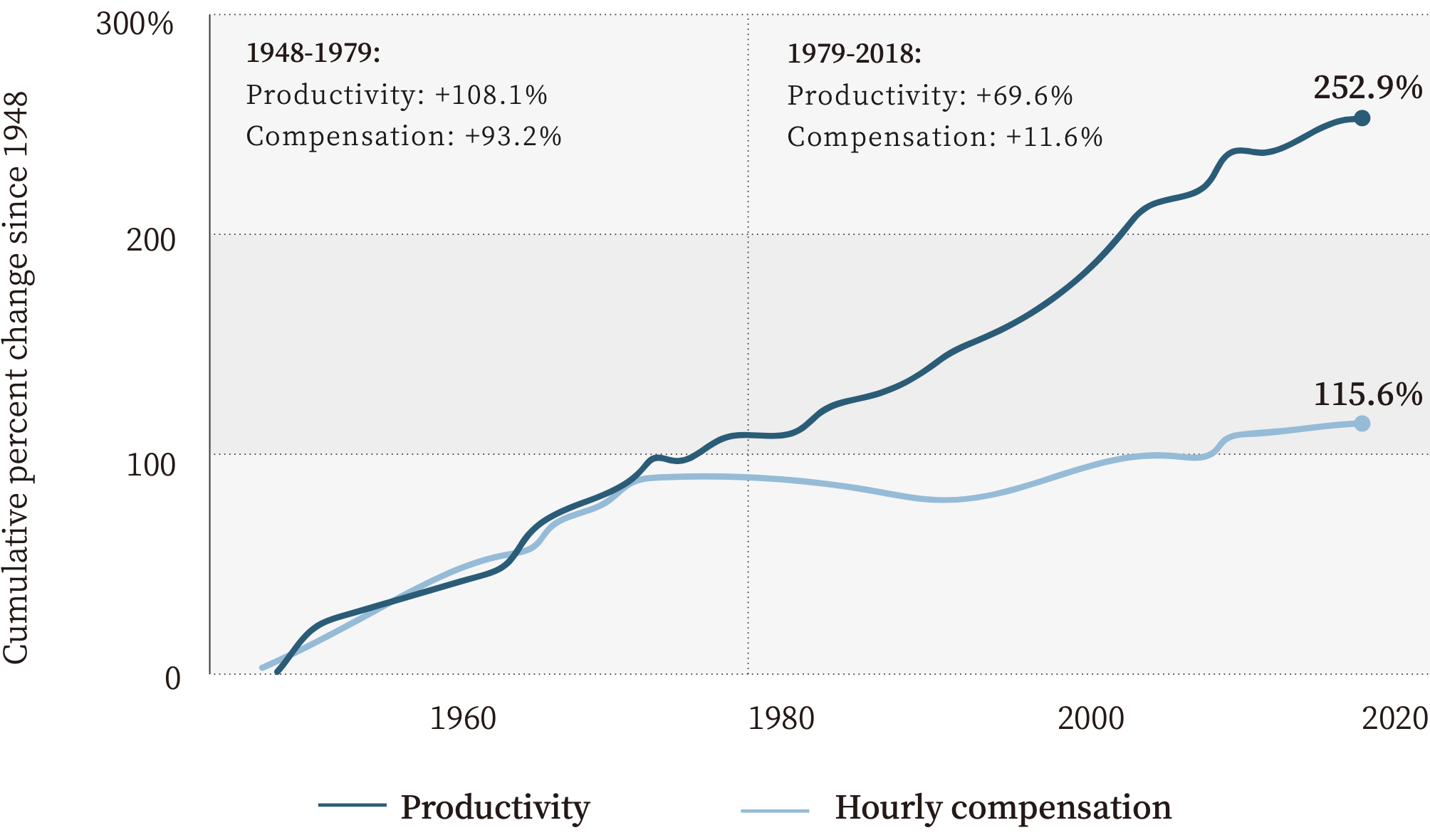 当下的情况似乎也是这样。上世纪80年代至今,数字革命孕育兴起。1979-2018年,美国生产率提高了69.6%,而平均时薪只提高了11.6%,看上去是陷入了“恩格斯停滞”。而在此前的30年时间,生产率和时薪几乎同步增长。如图2所示。