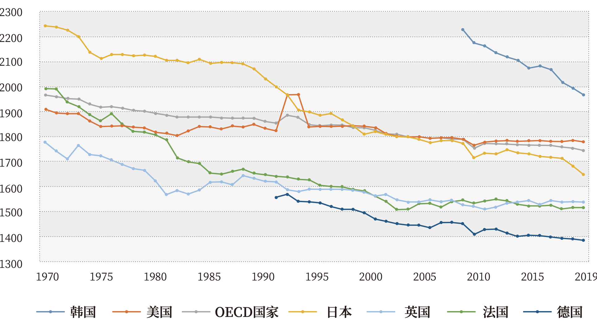 从历史数据看,人们的工作时长呈下降趋势。1870年,法国、德国、美国、瑞典、比利时等早期工业化经济体的年平均工作时长超过3000小时,作为工业革命发源地的英国也有2755小时(来源:Huberman & Minns,2007)。今天发达国家的工作时长几乎仅有150年前的一半。根据OECD数据,2019年其成员国的年平均工作时长为1743小时,英、法、德分别为1537小时、1511小时和1383小时。我们需要注意,工作时长的下降并不是均匀发生的,不同国家在不同阶段的差异较大。进入本世纪,欧美发达国家工作时长下降趋势日益停滞,以美国为甚。2011-2019年,美国的平均年工作时长保持在(1780±3)小时范围内,几乎不变。如图3所示。