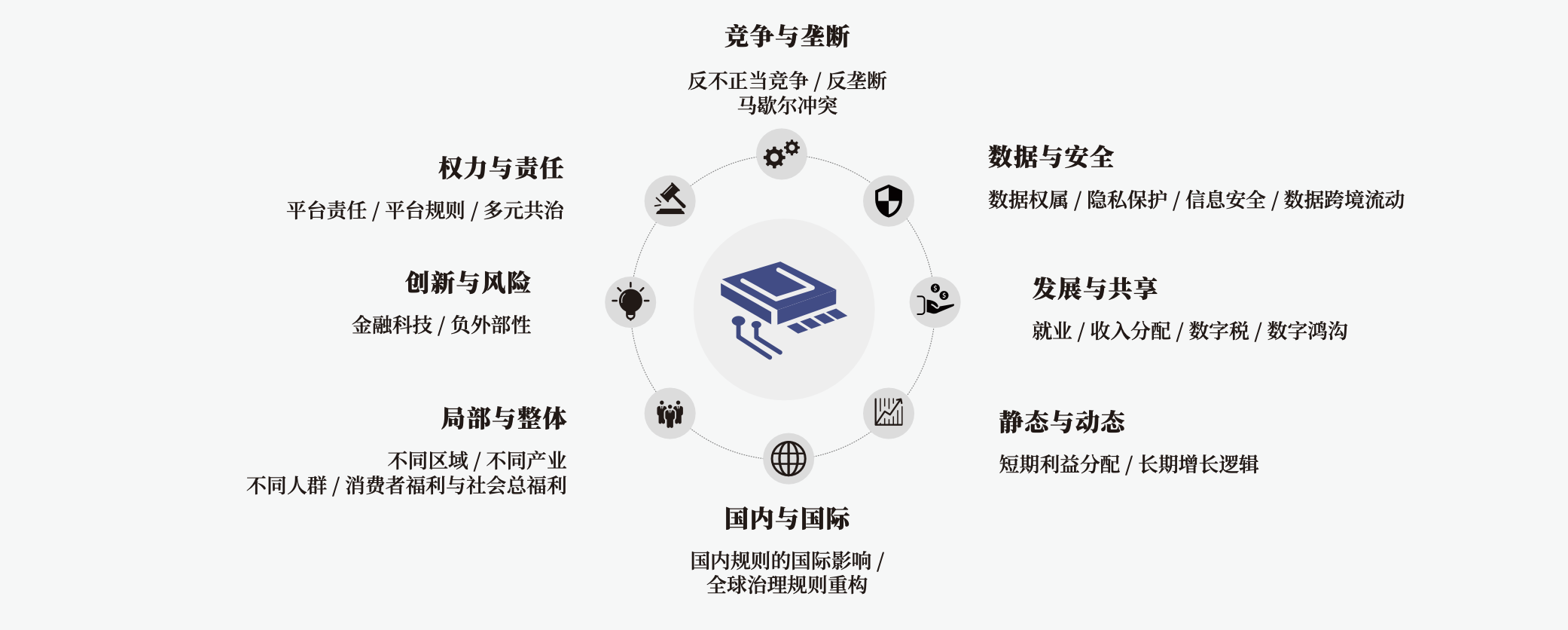 但作为重大通用目的技术,数字技术同时也在对经济社会的运行方式产生深远影响,传统的规则框架需要按照平台经济和数字社会的进化规律进行重构。数据权属如何配置?如何防范金融科技创新带来的风险?如何监管数据跨境流动?最优的数字市场结构是什么?怎么才能促进数字经济领域的竞争和创新?是否应该征收数字税?如何平衡平台经济与传统产业的关系?如何建立平台的外部评价机制?伴随数字经济的发展,诸如此类复杂难解的崭新问题层出不穷,呼唤数字规则框架构建。