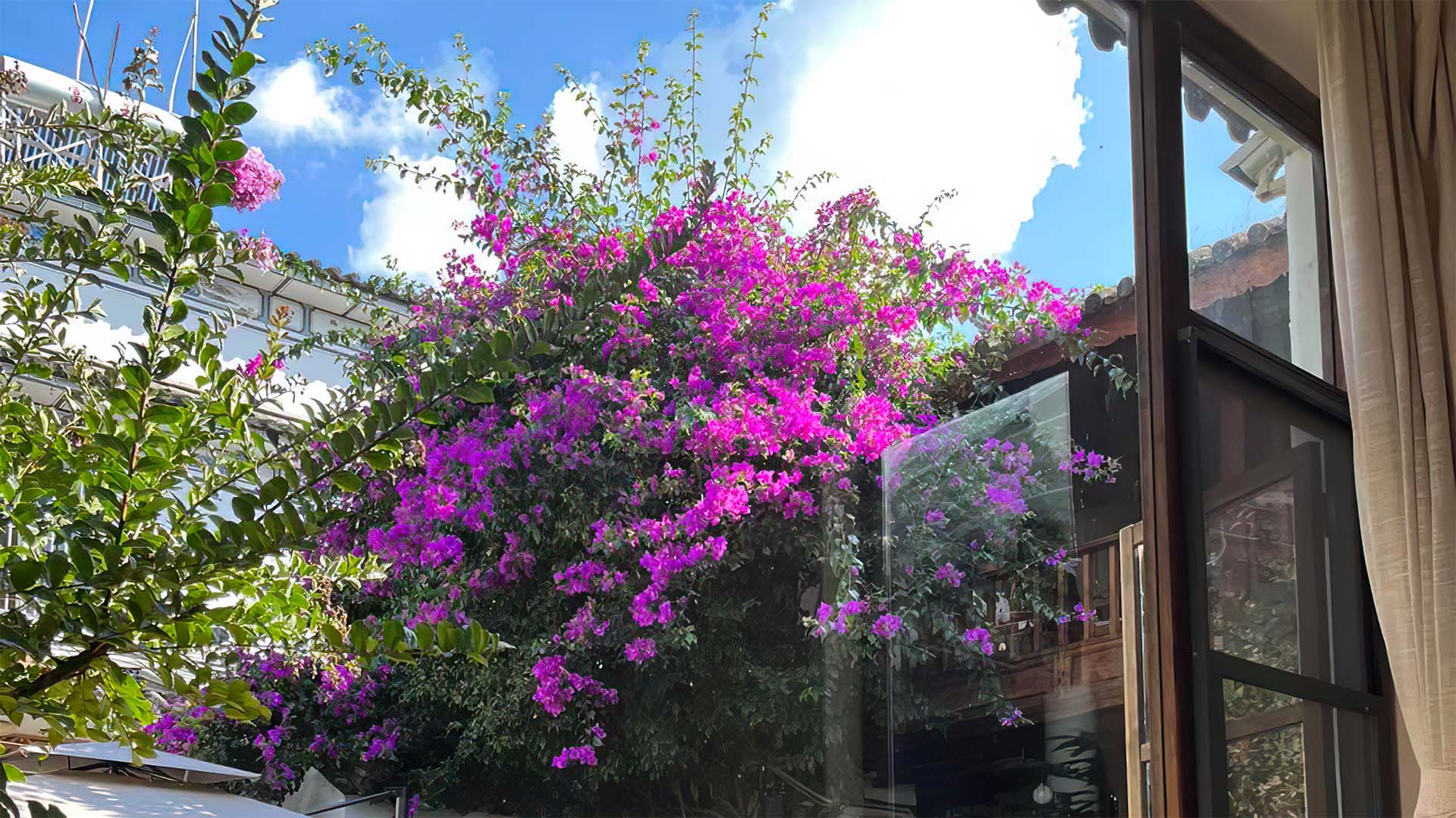 下午时分,阳光从窗户打进来。民宿内,花园里的野花开得正盛。不禁感叹一句,原来这就是生活在大自然的感觉。