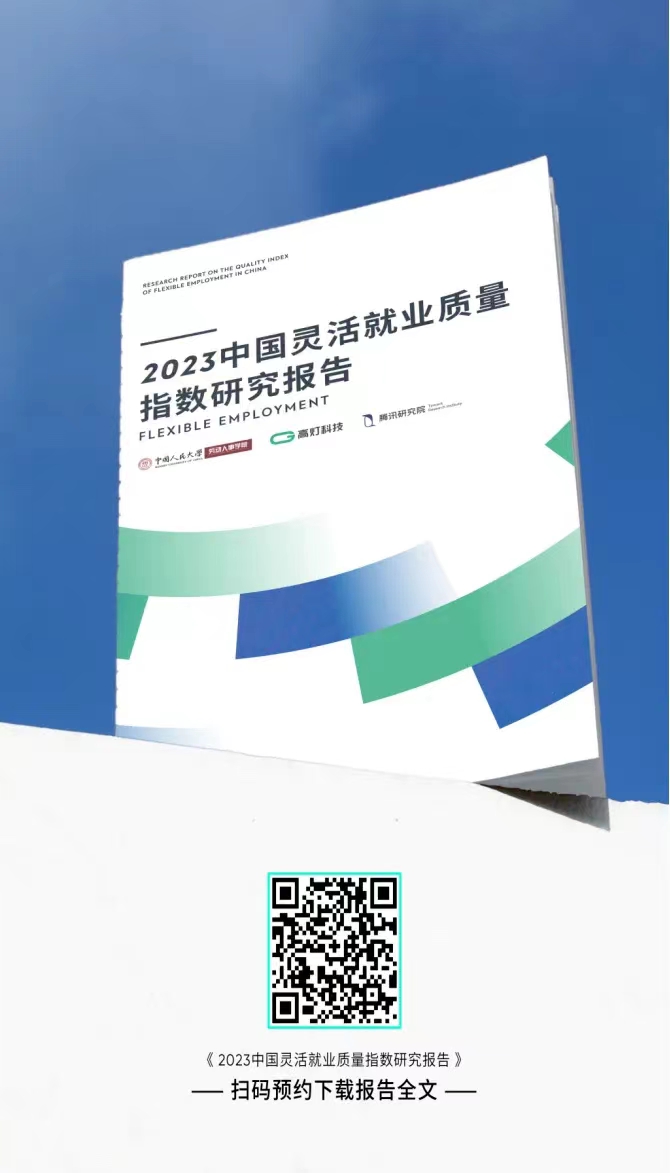 2023年12月19日,中国人民大学劳动人事学院、高灯科技与腾讯研究院在“2023中国灵活就业质量指数报告发布暨灵活用工产业研讨会”联合发布《2023中国灵活就业质量指数研究报告》(以下简称报告),该报告是三方首次联合发布,也是我国聚焦灵活就业质量的业界首个研究成果,为推动灵活就业的规范化、高质量发展提供了有力的数据支撑和理论指导。