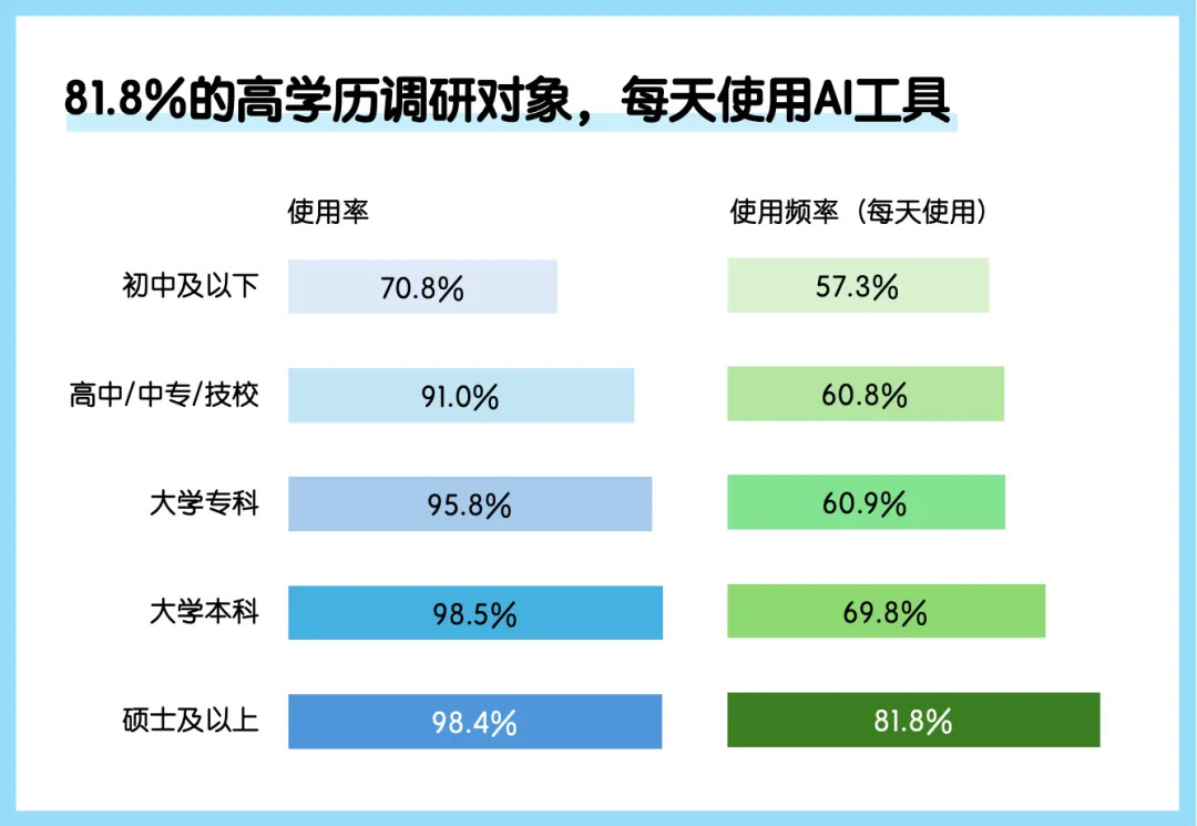 腾讯研究院在2025年9月的最新调研发现,生成式人工智能在中国受访成年人中已近乎全面普及,并从根本上融入了他们的日常工作和学习。